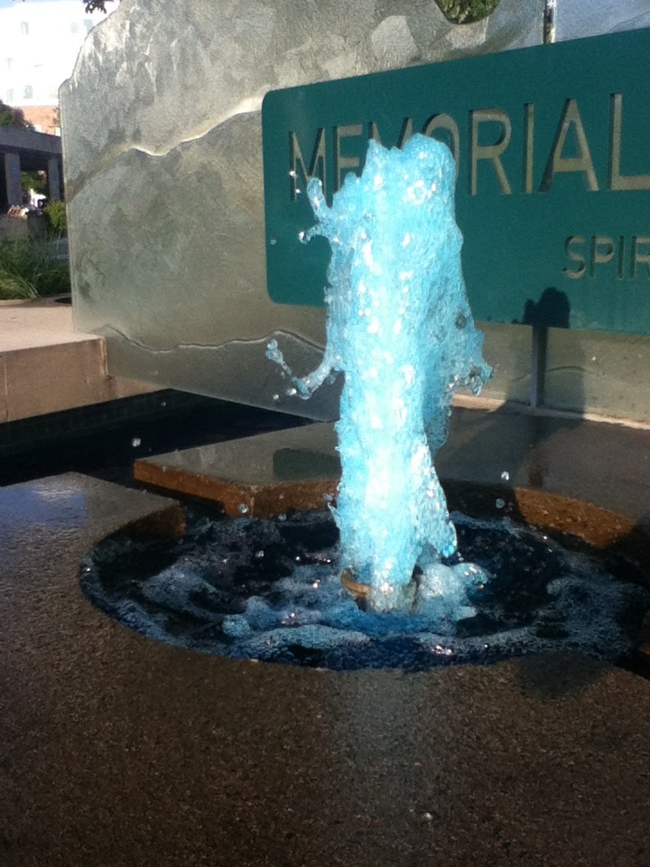 In all seriousness, I think this blue coloration completely destroys the effect of the fountains and makes them repellent in more ways than designed. I am at a loss to decide whether a fountain with weird flowing blue material is infact a community benefit.