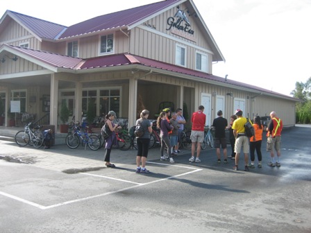 Everything just worked out perfect for this ride! We had a good turn-out, there were 12 of us. Even though the skies were grey when we started off from Memorial Peace Park, it never rained, and before we knew it the sun came out and it was actually quite warm. We headed north on 224th, and made a loop via 124 Ave, Blackstock and then east on 128 Ave. to get to Golden Ears Cheesecrafters, our first stop.